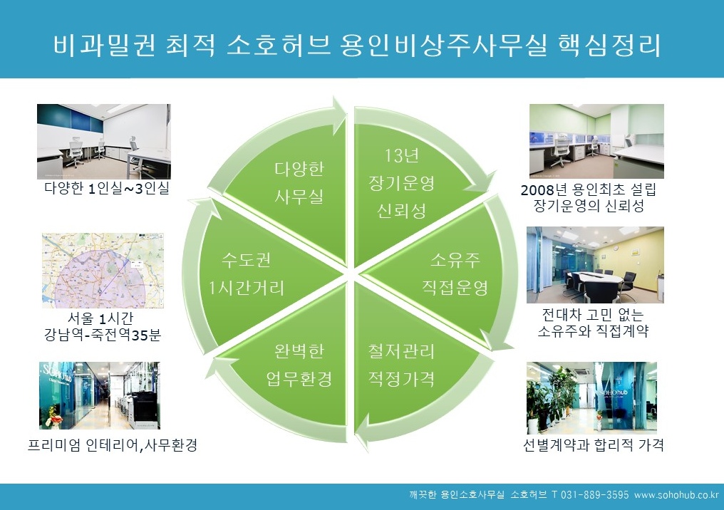 가장 수도권에서 효율적인 위치와 입지를 자랑하며 안전한 비상주오피스로서 확고한 지위를 다진 용인비상주오피스 소호허브의 특장점에 대해 꼭 점검해 보세요